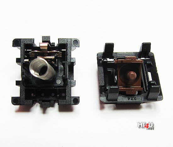 Die MX-Brown werden im Grunde in der Mitte zwischen den linearen Schaltern und den MX-Blue angeordnet. Der kurze Schaltpunkt und der geringe Widerstand lassen grundsätzlich sowohl schnelles Schreiben als auch intensives Gaming zu; zudem wird auch nicht beim Mehrfachklick geschwächelt. Mit ihren Eigenschaften sind diese Tasten im Grunde bei Allroundern sehr beliebt.