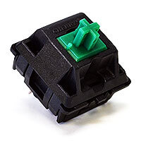 Ein weiterer, zumindest aktuell in Europa unbedeutender Switch von Cherry ist dann der MX-Green. Er stellt eine Mischung aus MX-Blue und MX-Black dar. Wie der Blue-Taster gibt es auch hier einen klar spürbaren Klick und Schaltpunkt. Den hohen Druckpunkt hat man sich aber bei der Black-Variante abgeschaut. Der Widerstand liegt bei 80 Gramm. Ein gut passender Einsatzbereich wäre als Switch für die Leertaste (Spacebar), welche regelmäßig mittels Daumen betätigt wird und daher ruhig mit einem höheren Druckpunkt antreten darf. Unterschiedliche Taster in Tastaturen zu verwenden, ist allerdings auch nicht gängige Praxis. Uns ist bislang kein Keyboard in Deutschland bekannt, welches auf die grünen Cherry-Taster setzt.