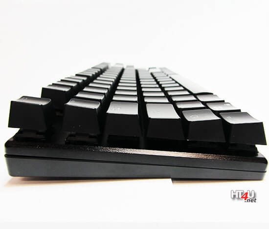 Durch eine fehlende Kunststofferhebung um die Taster wirken diese sehr hoch liegend und nur mittels Anstrengung erreichbar, zumal eine Handballen-Auflage fehlt. Eine nähere Prüfung der Abstände ergab allerdings, dass dies nur ein täuschender optischer Eindruck ist. Die Tasten liegen kaum höher verglichen zu anderen Spieletastaturen mit mechanischen Switches.
